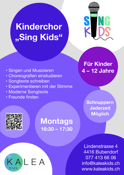 In unserem Kinderchor singen wir peppige Kinderlieder, schreiben moderne Lieder um mit eigenen Songtexten, experimentieren mit unserer Stimme und mit Musikinstrumente, studieren Choreografiene und Tänze ein und zeigen unser Können bei verschiedenen Auftritten.